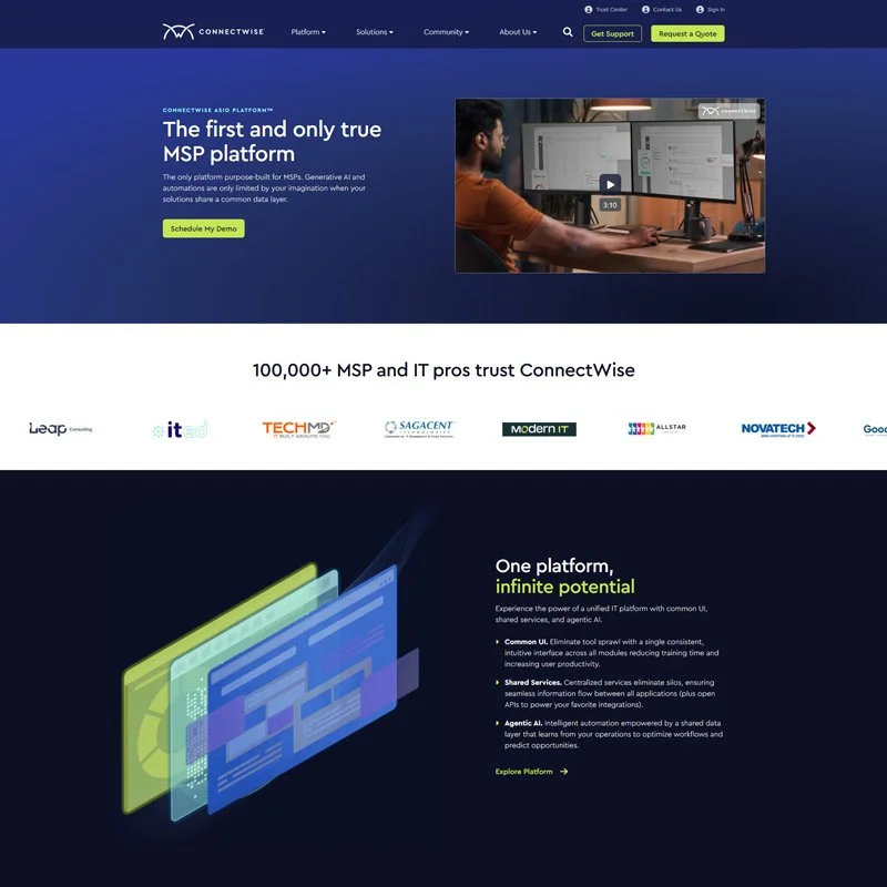 The connectwise.com rebuild was a collaborative effort across all of marketing, led by the brand team. This full-scale transformation of connectwise.com cut through years of digital sprawl to reduce 2,700 pages down to 950, consolidating fragmented experiences into a high-performing, brand-aligned marketing engine. We migrated to Optimizely 12, overhauled the content architecture, clarified the CTA strategy, and redesigned priority paths to enhance the user experience and increase demo conversions. It was a reinvention of how our website supports the business, evolving it from a bloated archive into a true growth driver.